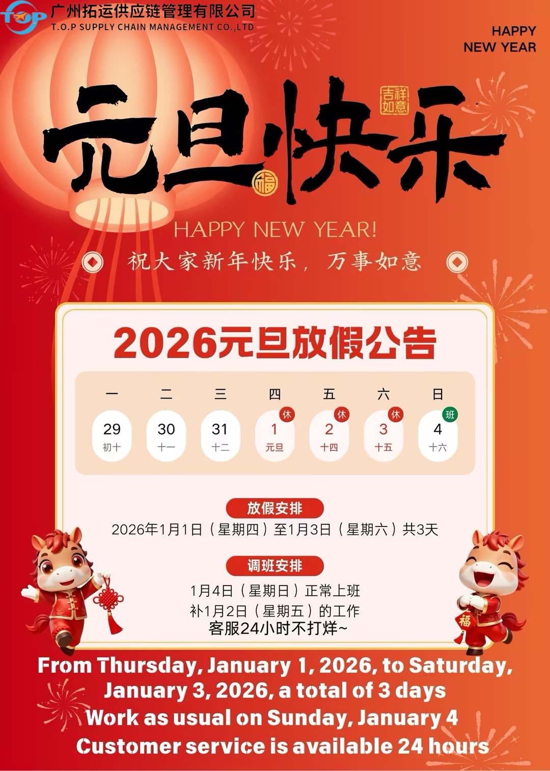 2026年拓运公司春节假期放假通知